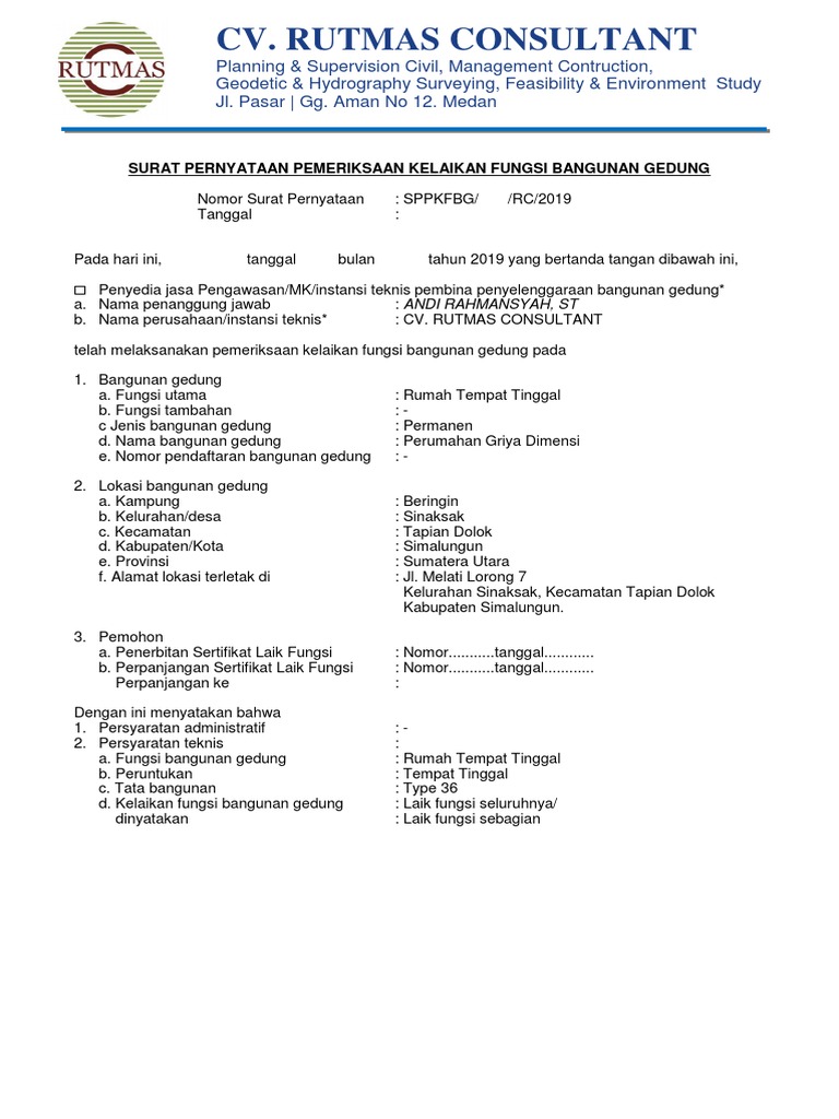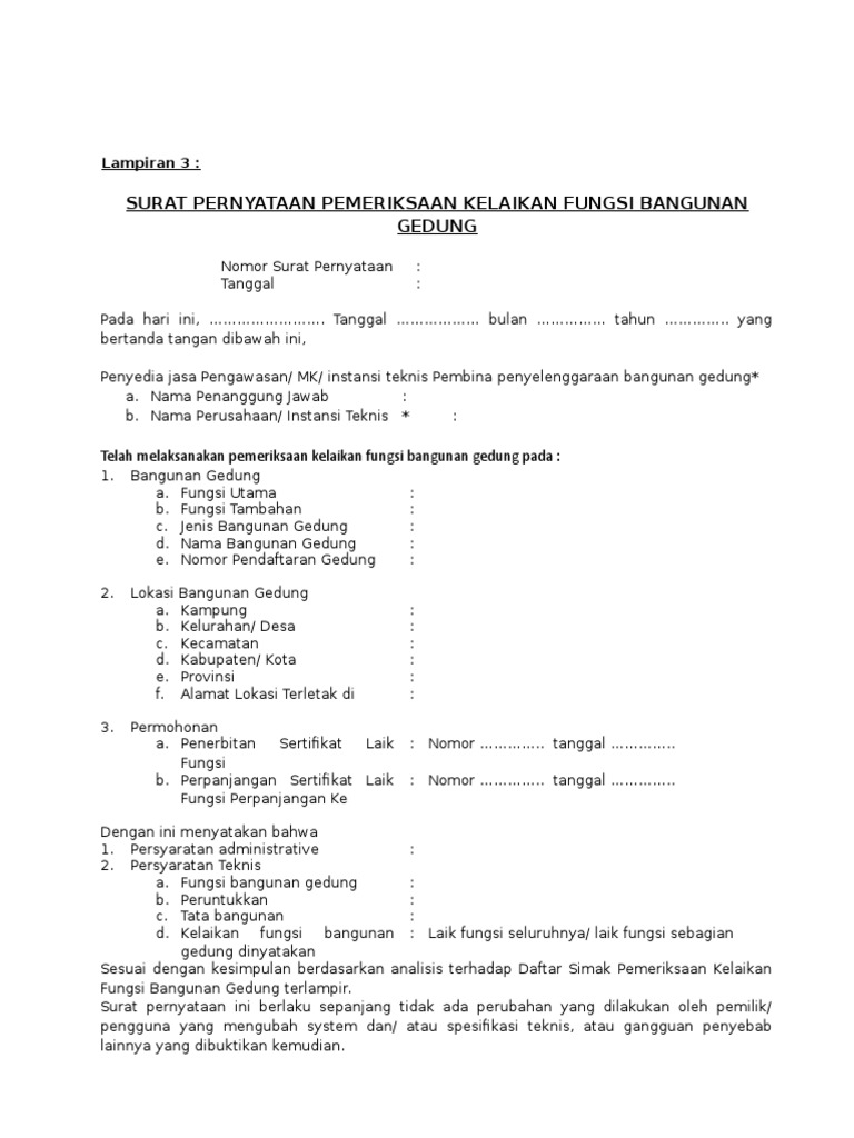 Surat Pernyataan Pemeriksaan Kelaikan Fungsi Bangunan Gedung Pdf
